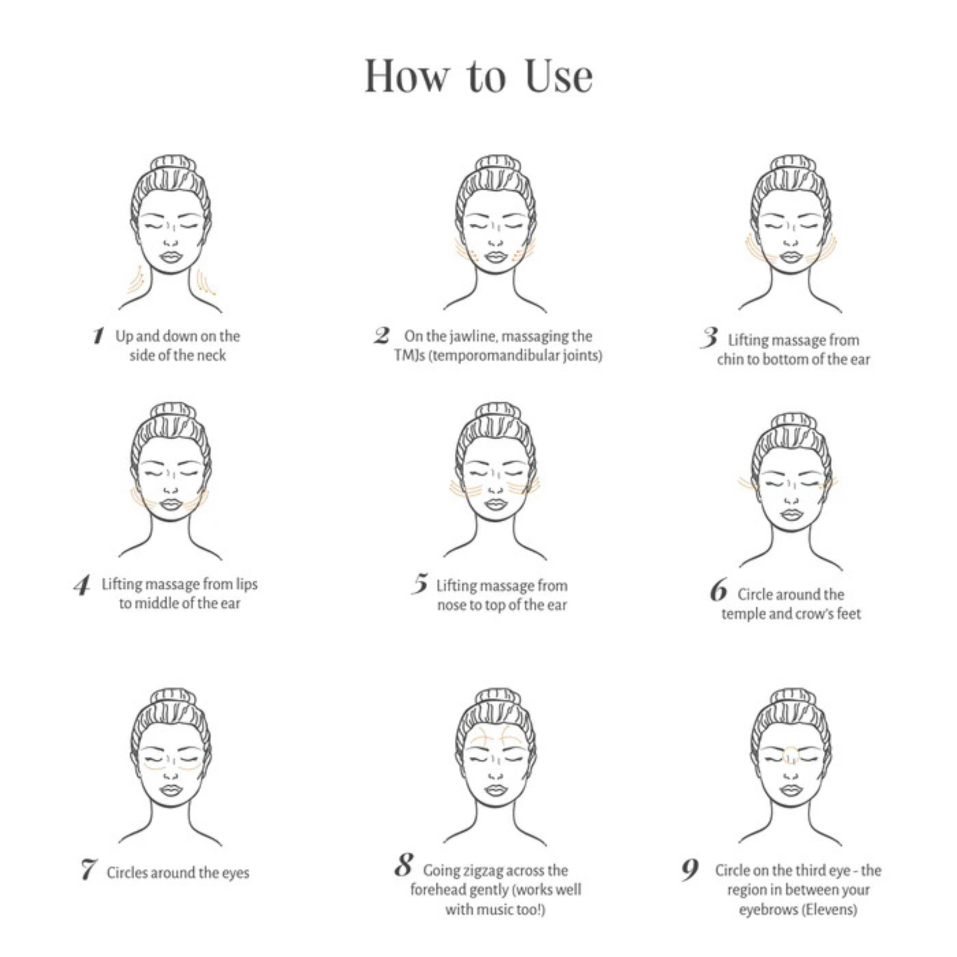 Outward Circular Movement: For lifting and firming face muscles