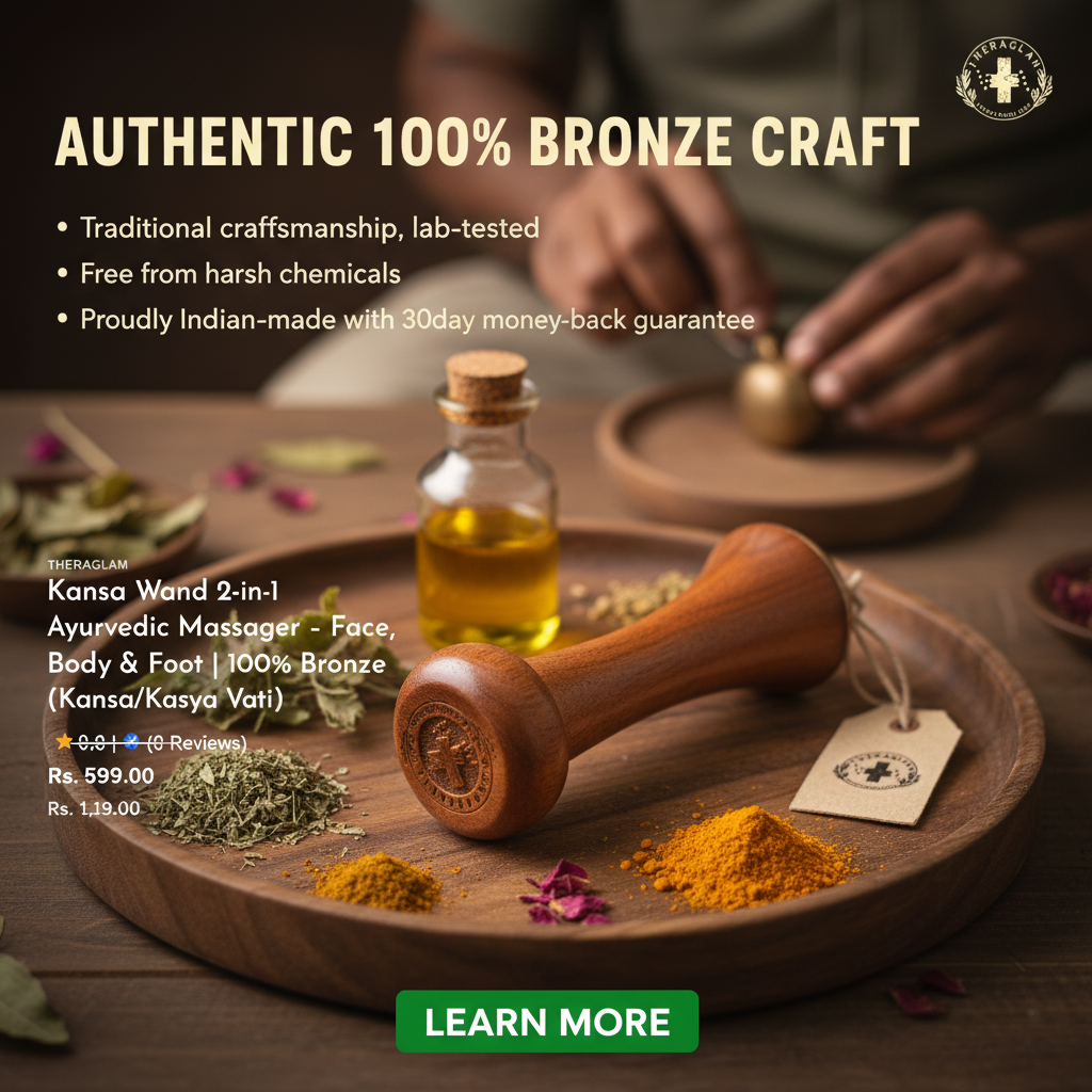 Kansa Wand 2-in-1 Ayurvedic Massager – Face, Body & Foot | 100% Bronze (Kansa/Kasya Vati)